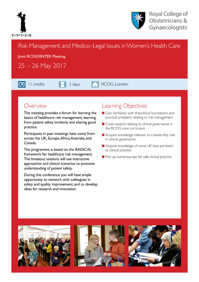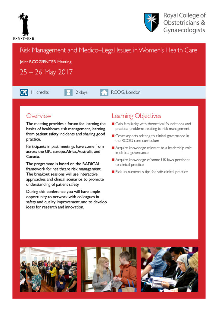 The meeting provided a forum for learning from patient safety incidents and sharing good practice in promotion of patient safety. This is the only annual national conference on risk management in obstetrics and gynaecology. The emphasis throughout the meeting was on practical as well as theoretical concepts, and delegates had the opportunity to network with colleagues involved in safety and quality improvement.